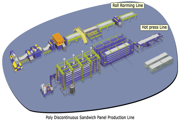 | Поточная линия для производства сэндвичивых панелей полипрерывистого типа
